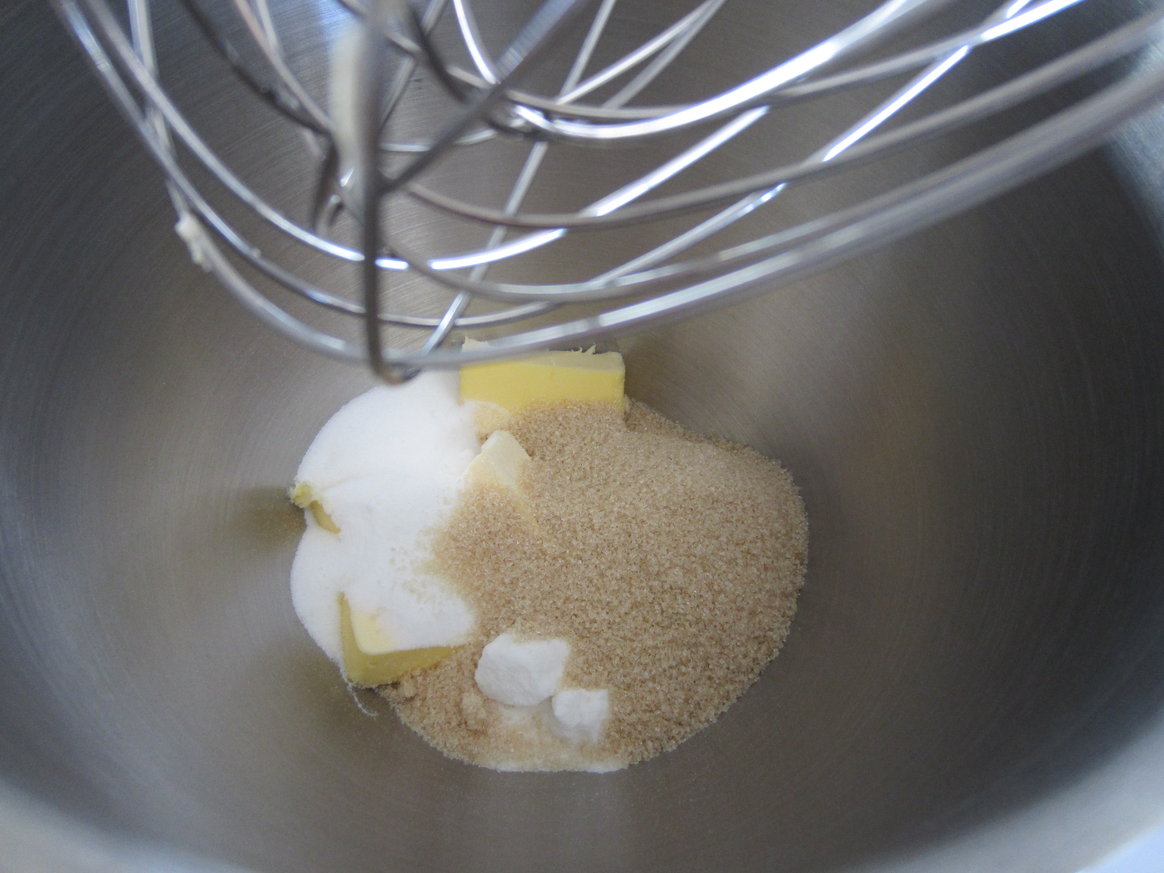 - Preheat oven to 175°. Cream butter and sugars until well combined.