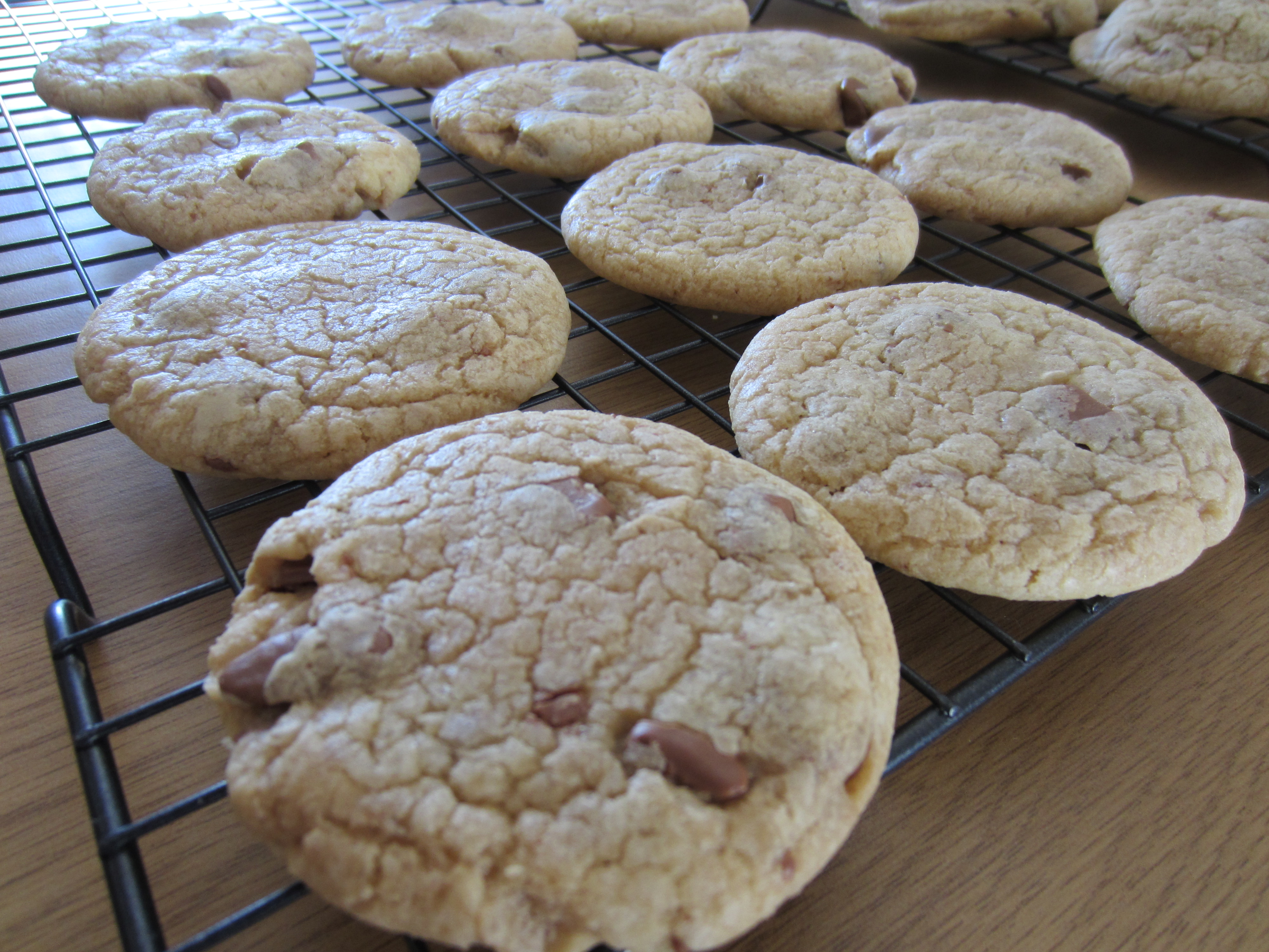 One of my many baking missions is to find the perfect choc chip cookie recipe. There are countless methods and takes on this “classic biscuit” leaving you with endless options, depending on your preference. They vary from crunchy to chewy and from sweet to salty. For me personally, as long as the choc chips are delicious and not “baking chocolate” I am satisfied 🙂 For this reason I always use chopped up Cadbury dairy milk when a recipe calls for some choc chips as it tastes divine and you’re able to decide their size.