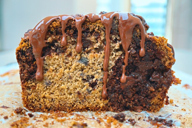 - Alternating between the two mixtures, spoon them into the greased mini loafs pans and once they’ve filled the tins, take a skewer and swirl them from one end to the other to create the marble effect.