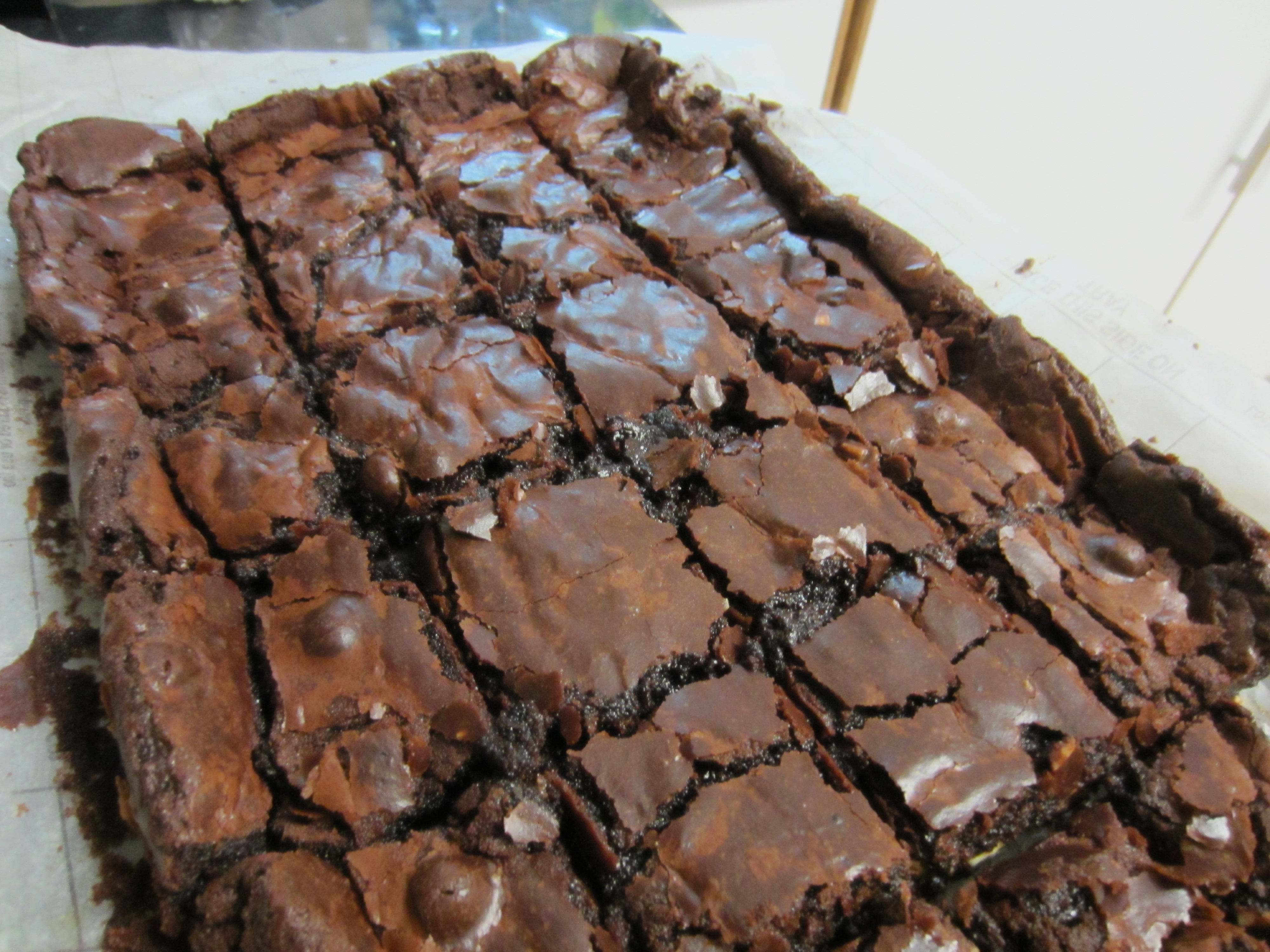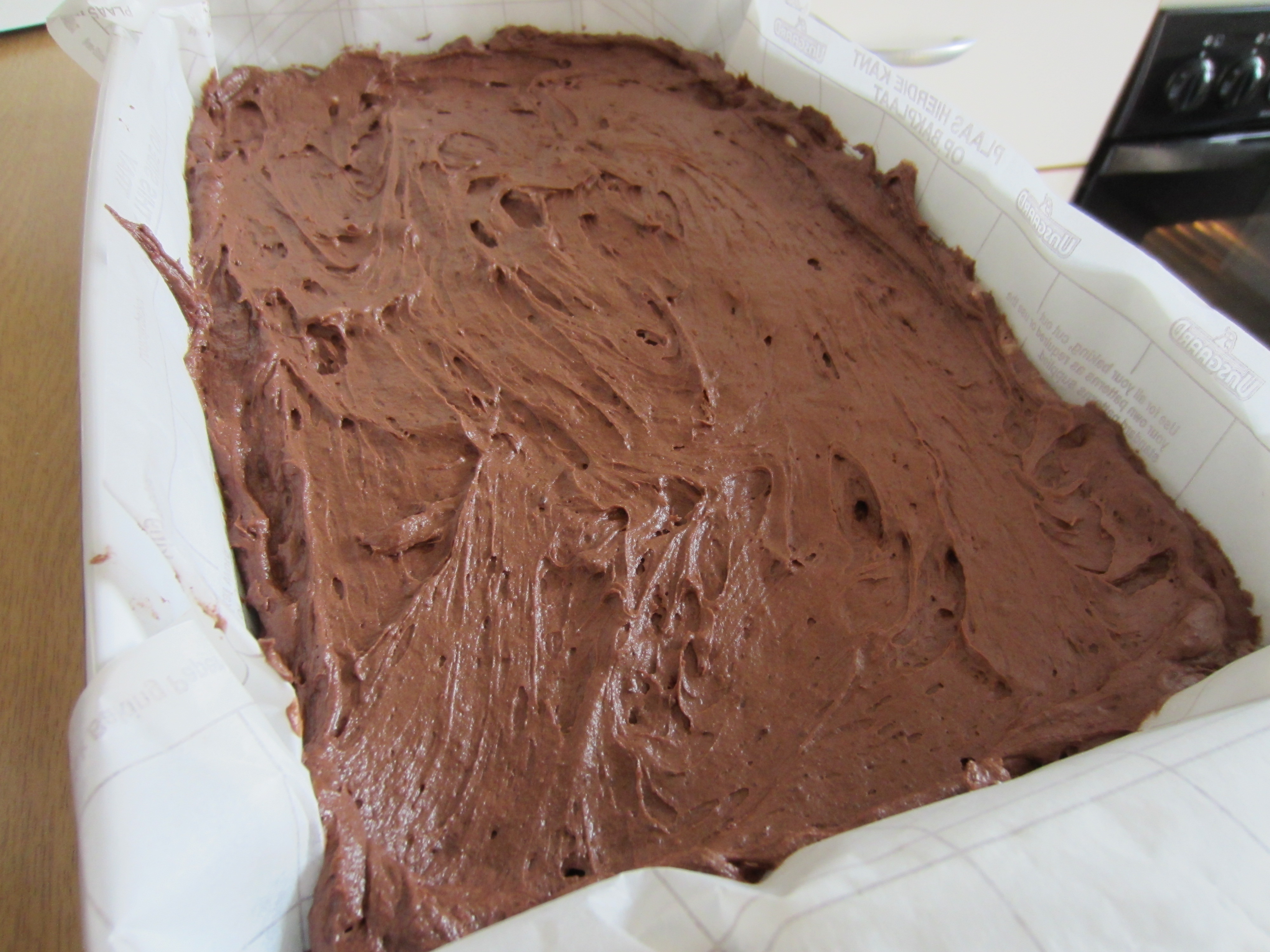 One of my first posts was the Chocolate Brownie, which you can view here. As you can see it’s more of a cake/pudding type of chocolate brownie, served with chocolate sauce and preferably some generous scoops of ice-cream. Whenever I go to really good bakeries, I see these really divine chocolate brownie squares, my new-found addiction is the Lindt double chunk chocolate brownies which are sold at the Thursday Earth Fair Market in St Georges Mall…oh my they are heavenly! To combat my constant craving for these delicious blocks of love and goodness, I decided to attempt some sort of version myself.