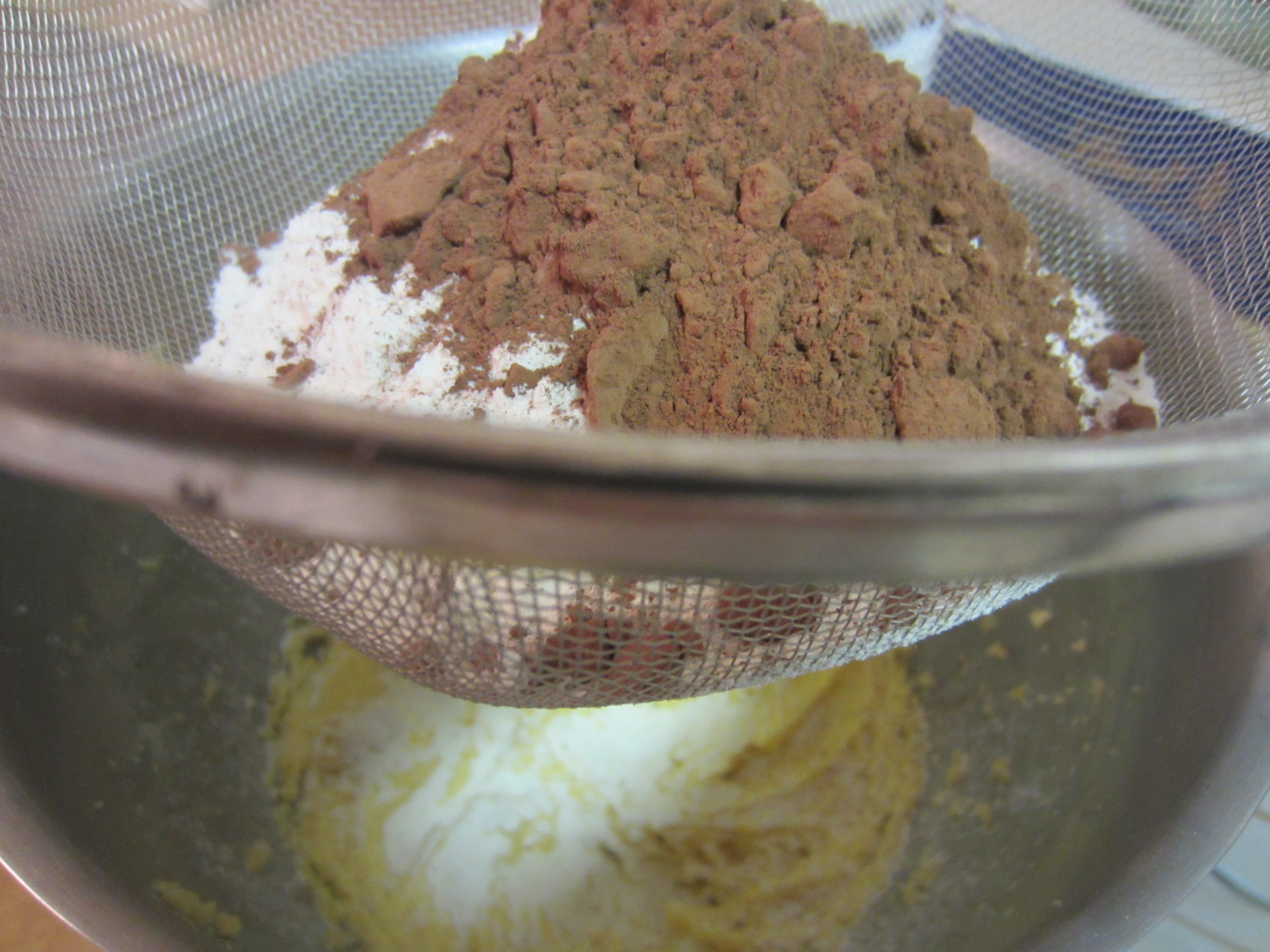 4. Sift the cake flour and cocoa powder into the butter mixture. Mix this until combined, be careful to not over mix.