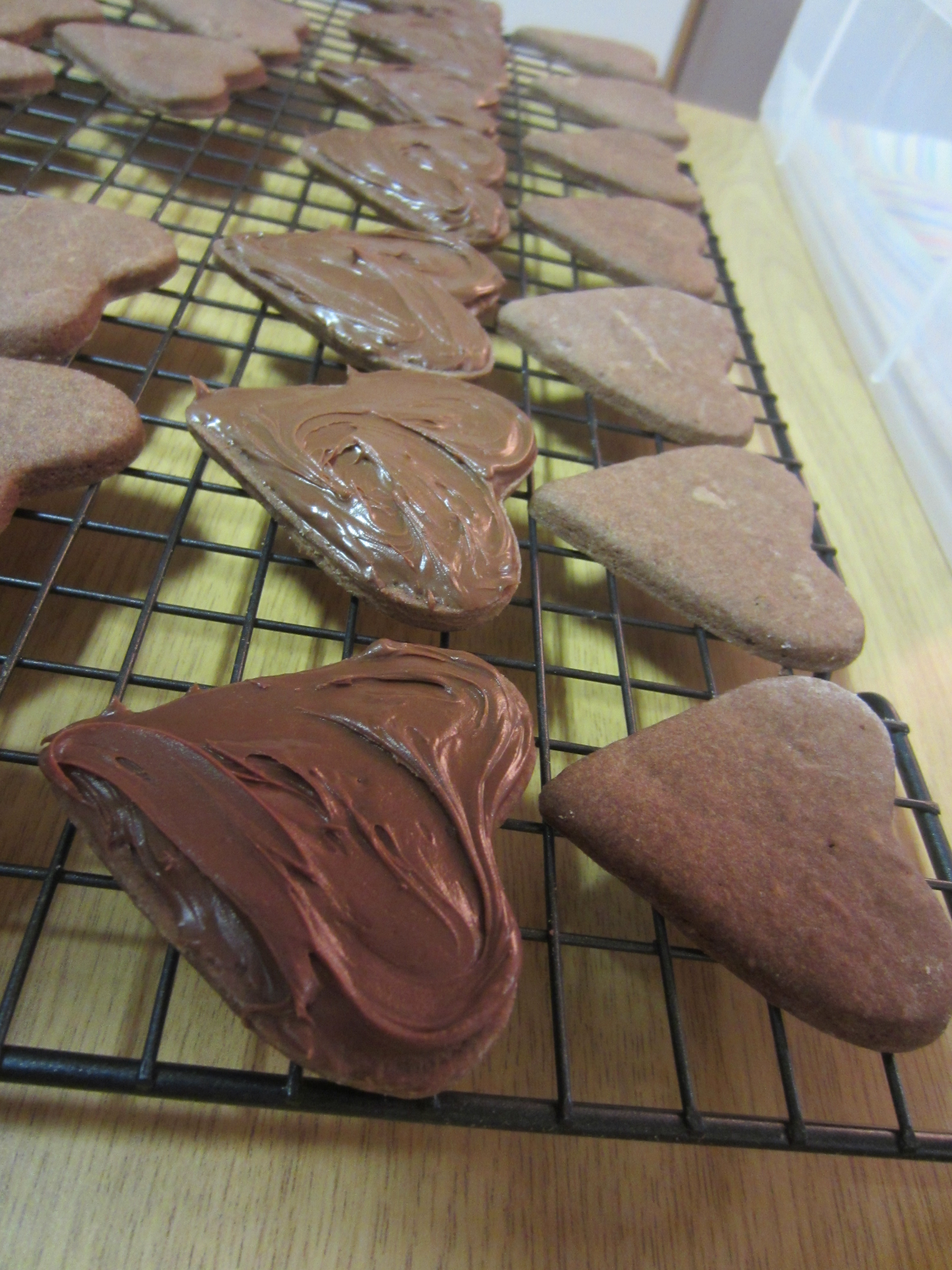 8. Remove from the oven and cool down slightly before transferring to cooling racks. Allow the cookies to cool down completely before sandwiches the biscuits with Nutella.